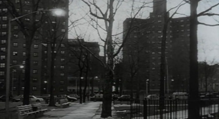 Em outra cena externa do filme, na qual ocorre o “quase” atropelamento de Paul Benjamin, é interessante notar, ao fundo, o movimento: passam adultos a pé, idosos, crianças correndo e brincando, pessoas sentadas em bancos etc. O balé da calçada é mostrado em tempo real e acompanhado pelo movimento de carros nas ruas.