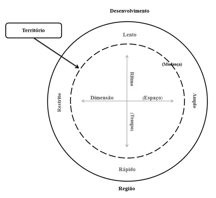 Para Mattedi (2015), o território encontra-se em constante construção e movimento, ou seja, território é o resultado da mudança no tempo em um determinado espaço ou lugar (Figura 1).