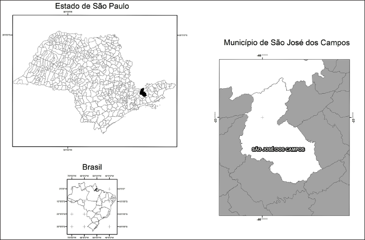 O município de São José dos Campos localiza-se no Vale do Paraíba Paulista (Figura 1), possui uma área de 1.099,66 km. e conta com uma população urbana em torno de 700 mil habitantes, de acordo com o Censo de 2010 (IBGE, 2014). Sua sede administrativa, a cidade, tornou-se vila em 27 de julho de 1767, depois de um período como reduto de índios aldeados. Nomeada Vila de São José do Paraíba, a cidade passou, desde então, por diferentes períodos de desenvolvimento que influenciaram sua conformação urbana atual.