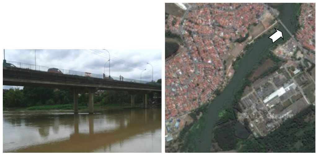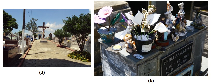 Em relação à construção da sepultura de Maria Peregrina, Melo (1992, p. 50) afirma que uma senhora, de nome Benedita Maria das Dores, construiu seu túmulo, em gratidão a uma graça alcançada, pela intervenção da andarilha. Em seu túmulo, mandou gravar um epitáfio: “Aqui jaz Maria Peregrina” (Figura 6). Em 2002, o cemitério municipal, localizado no bairro de Santana, recebeu a denominação “Cemitério Maria Peregrina”, de acordo com a Lei n. 6.184/02, de 17 de outubro de 2002 (São José dos Campos, 2002b). No mesmo ano, a ponte que liga o bairro de Santana ao bairro Telespark, sobre o Rio Paraíba do Sul, em São José dos Campos, também recebeu seu nome, por meio da Lei Municipal n. 6.134/02, de 12 de junho de 2002 (São José dos Campos, 2002a) (Figura 7).