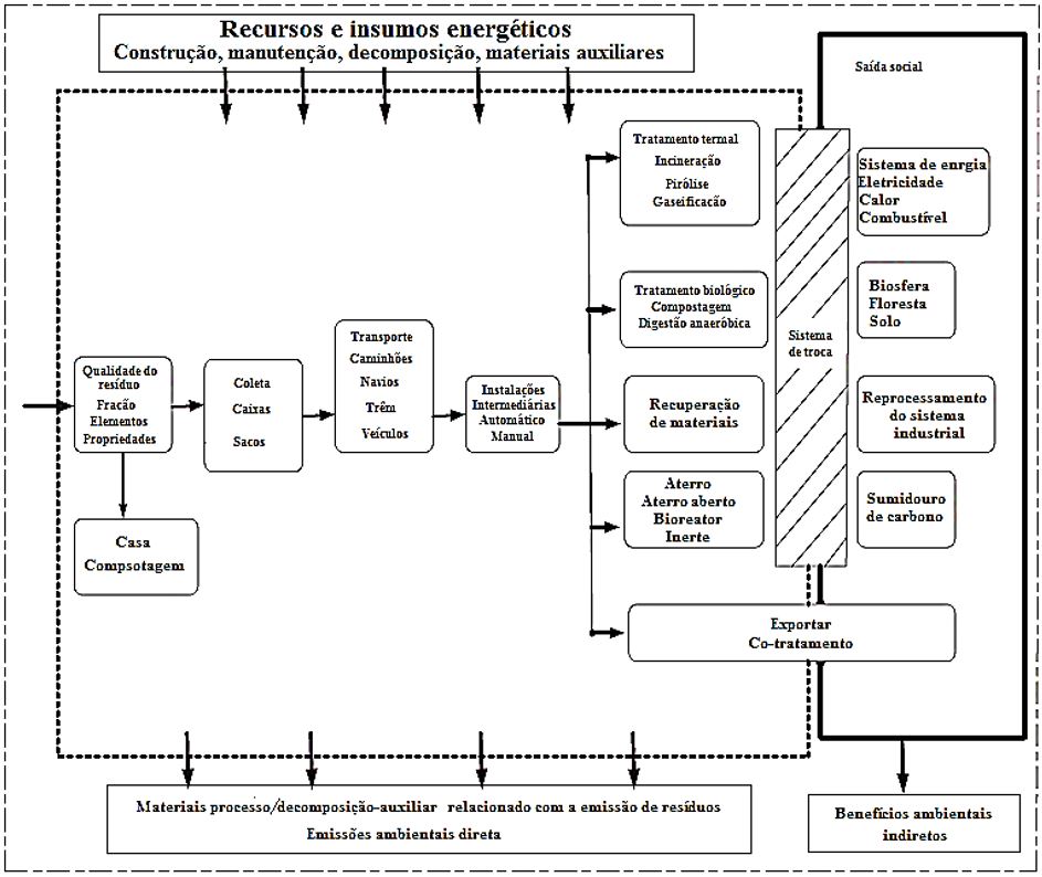 O conceito de gestão integrada de resíduos combina os fluxos de resíduos com a coleta de resíduos e os métodos de tratamento e disposição (Thomas & McDougall, 2005). Segundo Puna & Baptista (2008), o Sistema de Gestão Integrada de Resíduos Sólidos Urbanos atua em duas fases importantes: a primeira é a coleta e a segunda é o tratamento seguido da disposição final. O tratamento e a disposição final de resíduo sólido urbano (RSU) englobam a existência de unidades de valorização, tratamento (com recuperação de matéria e/ou energia) e disposição final controlada.