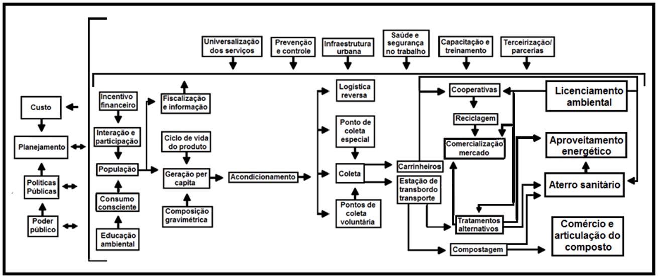 A gestão de resíduos sólidos urbanos demanda uma ação integrada entre os diversos atores e variáveis da cadeia, de acordo com as especificidades de cada região e população, devendo ser planejada pelo poder público municipal. Não basta a promulgação da lei que definiu a PNRS para que os princípios e objetivos sejam cumpridos e adequados à realidade dos municípios brasileiros.