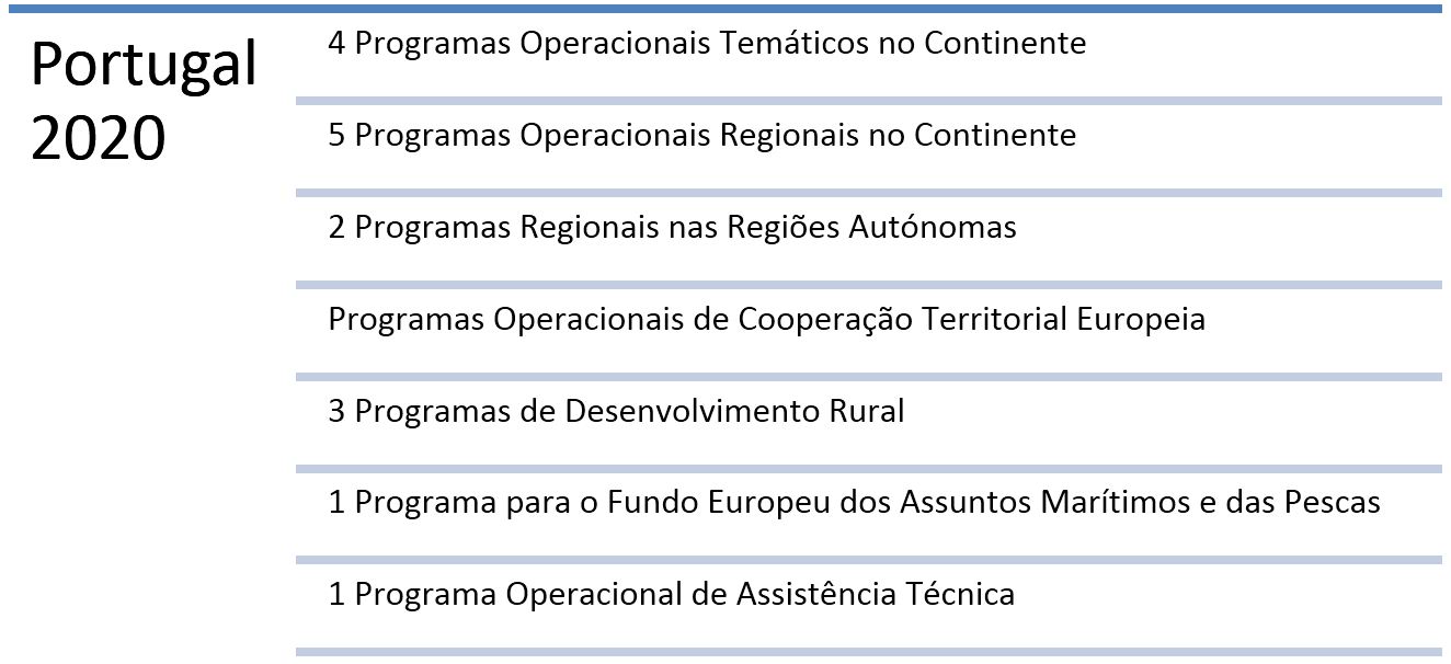 O Portugal 2020 é o Acordo de Parceria adotado entre o Estado Português e a Comissão Europeia, que reúne a atuação dos Fundos Europeus Estruturais e de Investimento (FEEI)4, no qual se definem os princípios de programação que consagram a política de desenvolvimento econômico, social e territorial a ser promovida em Portugal entre 2014 e 2020.