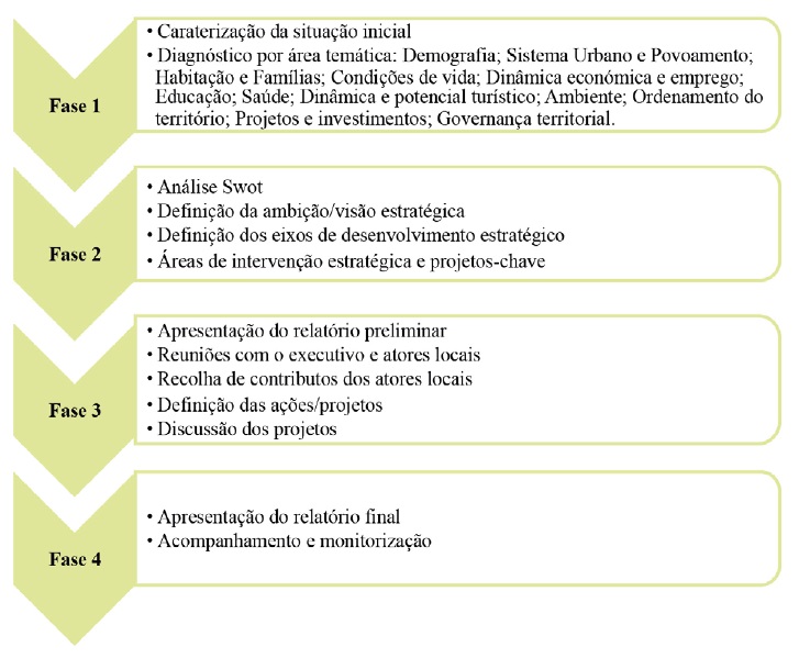 De facto, “num ambiente de grande complexidade, o planeamento estratégico surge como uma metodologia prospetiva que integra as múltiplas variáveis e determinantes” (Ferreira, 2005). Deste modo, a metodologia de elaboração do plano estratégico considerou sequencialmente um primeiro momento traduzido num diagnóstico, seguido da definição de uma estratégia e a concretização da estratégia num conjunto de ações/projetos.