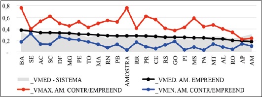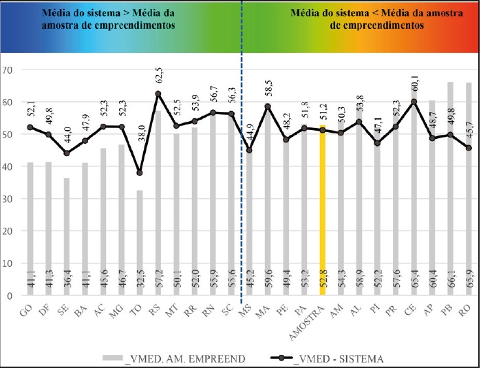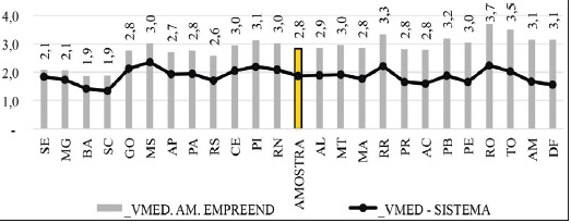 Diferentemente da variável de controle, em que a média dos empreendimentos é significativamente superior à média do sistema em quase todos os casos, os dados de controlabilidade expressaram, que, de maneira geral, as médias dos empreendimentos estão próximas às do sistema.