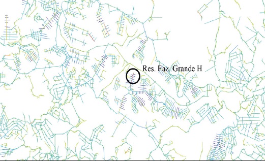 A variável controle exprime o grau de dominância da via em relação ao entorno imediato, ou seja, para uma via apresentar alto controle precisa ser muito conectada, mas os eixos conectados devem ter baixa conectividade. Trata-se de uma variável de natureza local que revela um padrão de “ilhas” de acesso (há um acesso único ao empreendimento — Figura 8).
