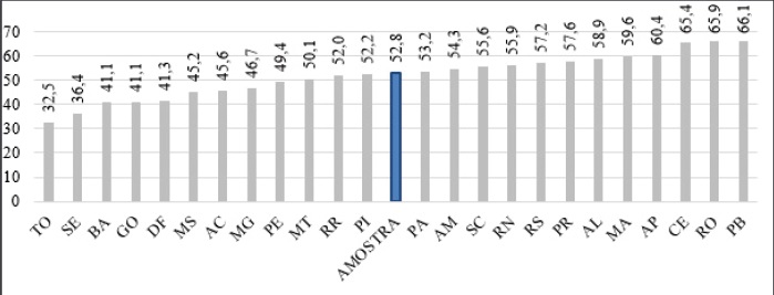 A análise permitiu evidenciar uma expressiva variação entre 32,5 (Palmas/TO) e 66,1 (João Pessoa/PB). Significa que os empreendimentos de Palmas são relativamente menos integrados (mais segregados), em média, do que aqueles de João Pessoa (menos segregados).