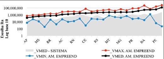 Escolha Global Rn, valor máximo, médio e mínimo dos empreendimentos e média do sistema.