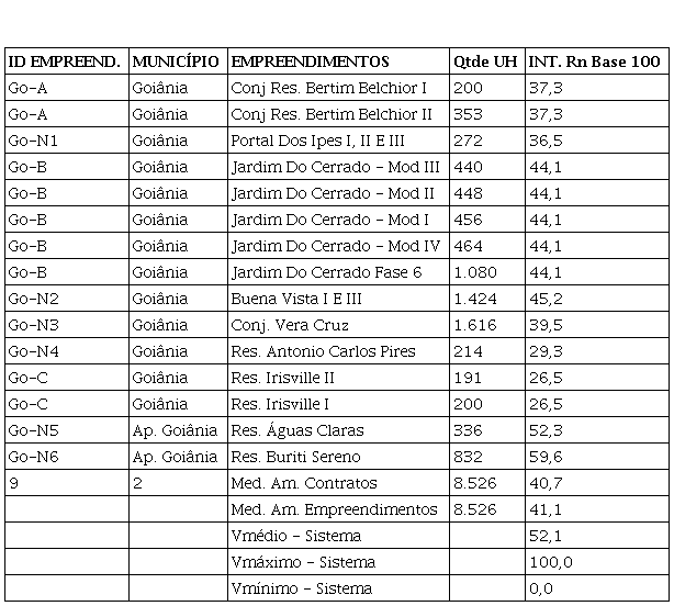 Integração Rn – Base 100, média dos empreendimentos.