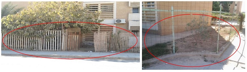 La sécurité: sous forme de dispositifs mis par l’habitant par la pose des murs végétales et murs en durs, ont pour but en premier lieu de protéger l’intimité en s’éloignaient au maximum la zone intérieur /extérieur (sa mise en état d’habitabilité et de résidentialisation) (Gilbert, 2009);