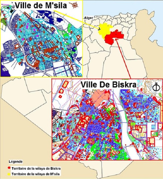 Dans ce cadre, des zones tests choisies dans la ville de Biskra et de M’sila, ont permet de vérifier l’hypothèse du dysfonctionnement cité au départ. Pour réaliser notre travail, nous posons deux problèmes préliminaires: