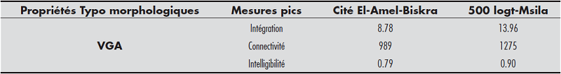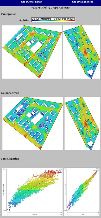 L'analyse de la (VGA) montre des distributions de valeurs variées entre l'intégration et la connectivité de la cité 1000 logt-Biskra et la cité 500 logt-M’sila.