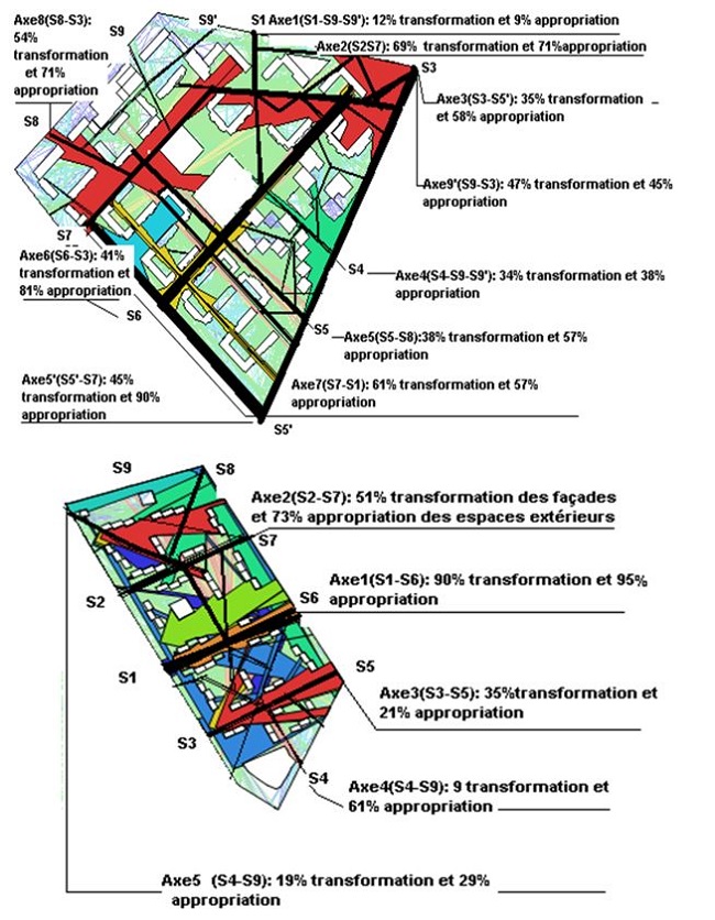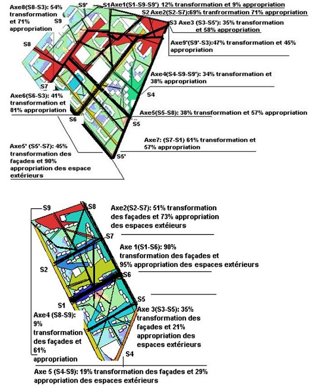 Les deux citées ont subis des transformations intensives de l’espace urbain (reproduction urbaine), par les modifications des façades et l’appropriation des espaces extérieurs.