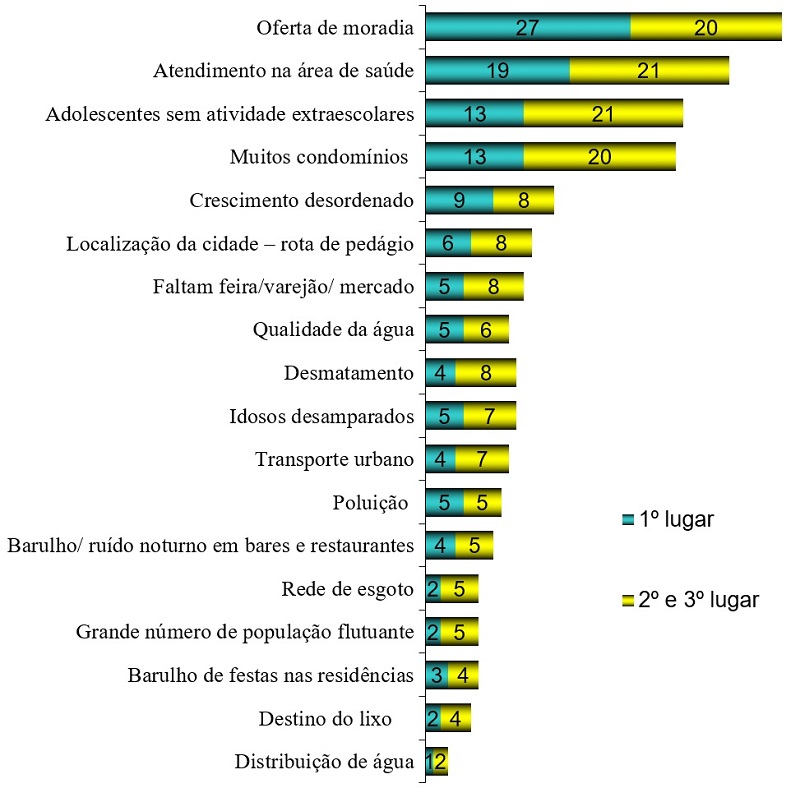 A leitura comunitária efetivada por meio da aplicação de pesquisas qualifica o dado técnico. Como um exemplo, em Vinhedo, detectou-se a existência de déficit habitacional a partir dos dados do censo do IBGE. A Prefeitura afirmava não ser um problema na cidade, mas 47% das respostas sobre o principal problema da cidade foram a falta de moradias (Figura 4).