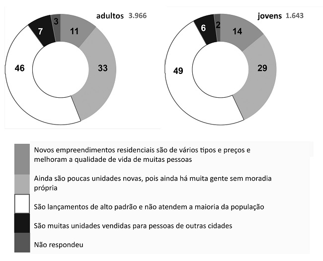 Em Jundiaí, a percepção do problema habitacional, com 49% das respostas para “os lançamentos não atendem a maioria da população” (Figura 7), trouxe para o debate que não faltam terras para habitação nem incentivos aos incorporadores, mas era necessário induzir a produção de unidades habitacionais mais baratas, que pudessem atender às diferentes faixas de renda.