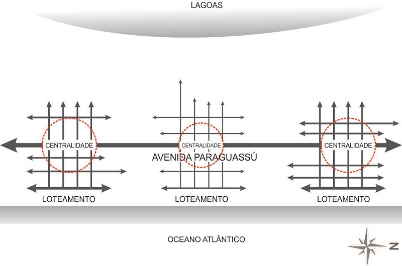 A partir da Estrada do Mar, surgem novos acessos aos municípios e é principalmente no encontro desses acessos com a Avenida Paraguassú que se concentram, com maior intensidade, as centralidades urbanas dos municípios. Com o aumento de mobilidade proveniente da consolidação dos acessos, essas áreas passaram a concentrar as maiores densidades de ocupação, bem como abrigar os principais edifícios administrativos dos municípios, além de concentrar estabelecimentos de consumo, como shoppings centers, redes de lojas de eletrodomésticos e móveis, entre outros.
