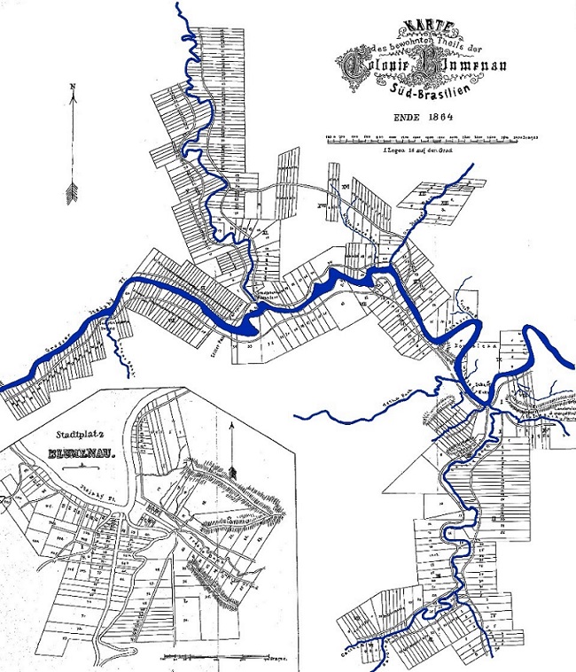 A primeira grande cheia registrada remonta ao ano de 1852, dois anos após a fundação da colônia, e desde então a cidade já foi inundada 85 vezes. Isto equivale, num período de 160 anos, a uma frequência superior a uma enchente a cada dois anos (Rudolpho, 2012, p. 103).