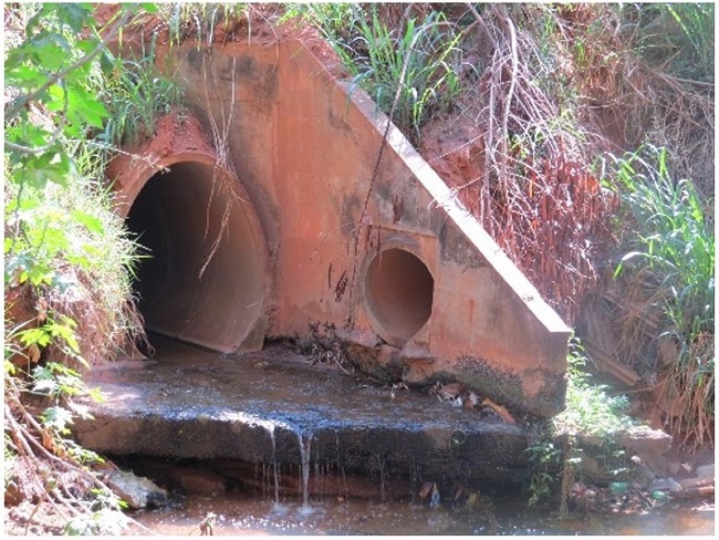 Os processos erosivos nas margens do córrego da Aldeia se encontram em estágio avançado, decorrentes da supressão da mata ciliar e agravados pela impermeabilização do solo que aumenta a velocidade de escoamento superficial. O lançamento da rede de canalização das águas pluviais diretamente nos cursos d’água, sem nenhuma preocupação com sistemas de dissipação de energia, também colabora para o agravamento dos processos erosivos, causando assoreamento do córrego, conforme demonstram as Figuras 1 e 2.