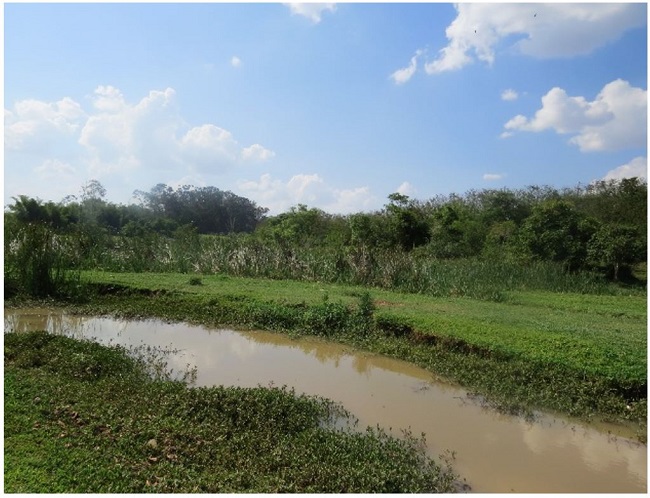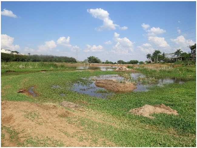 As áreas de várzeas apresentam a ocorrência de Taboa (Typha domingensis) e Aguapé (Eichhornia crassipes). Além disso, nas áreas úmidas, é possível verificar a ocorrência de diversas plantas características de área alagada, conforme pode ser observado nas Figuras 3 e 4.