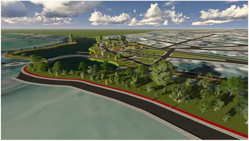 O projeto prevê ainda a recuperação total da represa Beira Rio, revitalizando toda a área no seu entorno, com espaços de lazer, esportes e cultura para a população. Para a execução das obras de recuperação, será necessário o esgotamento do lago atual a fim de desassorear e estabilizar as encostas com gabiões e reconstruir o barramento e o sistema extravasor que permita o efetivo controle das enchentes. Na margem esquerda da represa, o parque linear será implantado na extensão de 15 metros incorporados na legislação de parcelamento do solo. Na margem direita, embora sejam áreas consolidadas, há várias glebas de propriedade do município que viabilizarão a implantação dos equipamentos públicos sem a necessidade de desapropriações. O projeto também prevê a instalação de pistas de skate, praças com playground, concha acústica para atividades culturais, píer para esportes aquáticos e uma ponte para travessia de pedestres, conforme ilustra a Figura 10.