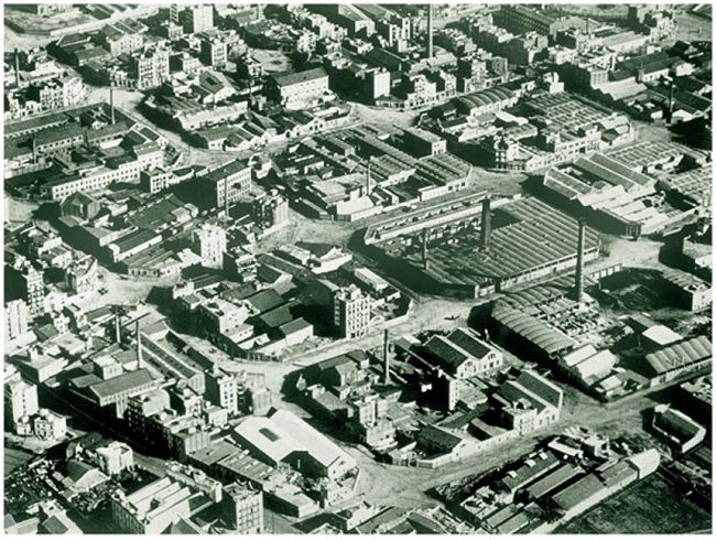 Com a crise de 1960 iniciou-se o declínio produtivo, caracterizado pelo processo de desindustrialização e encerramento de muitas atividades econômicas situadas na área. Dessa forma, a perda de sua função econômica propiciou a deterioração urbanística do bairro, que se converteu em um tecido com espaços e atividades econômicas obsoletas ( Casellas & Saurí, 2013 ).