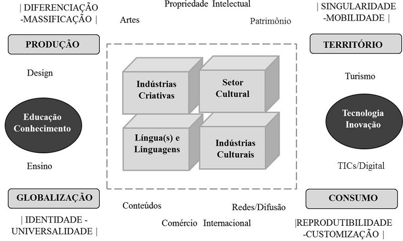 As indústrias culturais devem ser consideradas as atividades envolvidas na produção e distribuição de bens simbólicos cujo valor está associado aos seus conteúdos, ao que representam e significam. Essas indústrias são centrais na “[...] promoção e manutenção da diversidade cultural e no acesso democrático à cultura”, acabando por traduzir o cruzamento entre cultura e economia ( UNCTAD, 2008 , p. 11). Esses pressupostos fazem com que se identifique uma economia cultural cada vez mais sólida, assente na criatividade individual e, principalmente, na dinâmica das indústrias culturais e nas políticas de desenvolvimento transversais em diferentes pontos do globo ( Hall, 2000 ; Costa et al., 2009 ; Evans, 2009 ).
