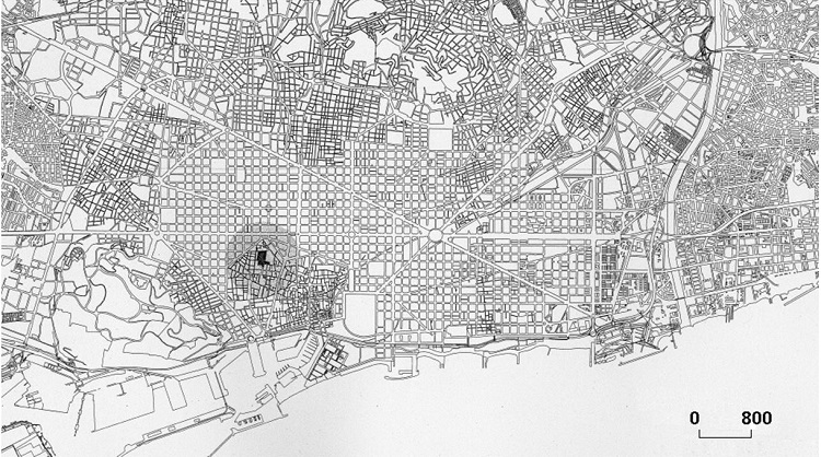 Nuestro caso de estudio es la Plaça dels Àngels, que se trata de un ejemplo paradigmático del ‘Modelo Barcelona’, ya que aglutina la intervención del espacio público mediante la monumentalización, la metástasis selectiva y la instrumentalización de la cultura para promocionar internacionalmente la ciudad. Además, esta plaza posee una ubicación excelente; es un intersticio entre antagónicas condiciones de los del Raval y l’Eixample; un cruce de caminos entre uno de los barrios con mayor tasa de inmigración, económicamente deprimido y de intrincada trama urbana con otro turístico, comercial y emblema de la Barcelona progresista de Ildefons Cerdà y desbordado por el turismo.