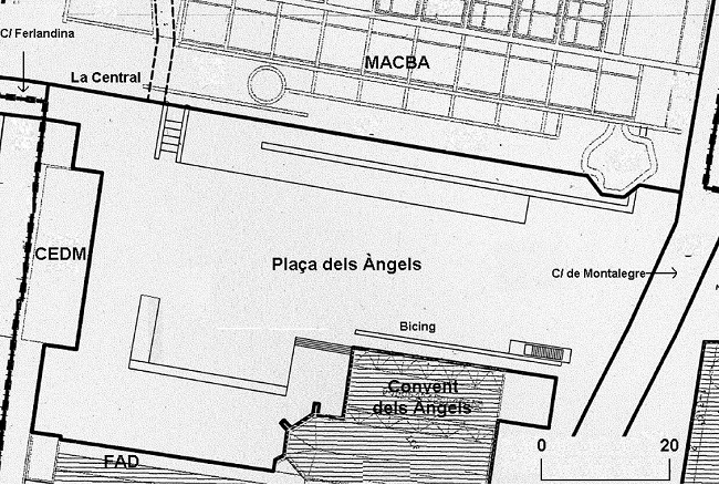 Al delinear su genealogía espacial, comprendemos que la Plaça dels Àngels es un espacio público y, al mismo tiempo, mucho más.