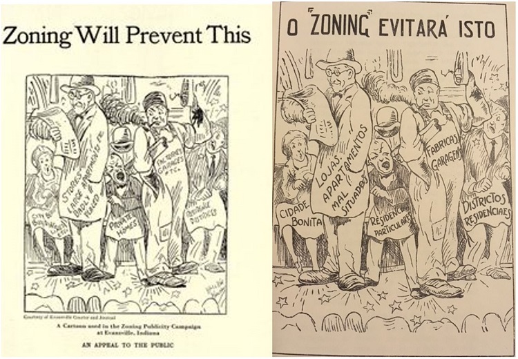 Likewise, Anhaia Mello also reflects on the “Zoning”, subject in several passages of Harland Bartholomew’ (1924, p. 117) book and transcribes them in his 1929’s book. In this matter, he is also a reader of Edward Basset and George B. Ford. He illustrates the topic in his book by translating the ironic image of a pamphlet in Evansville, Indiana: “Zoning Will Prevent This”10 (Figure 6). The zoning law Anhaia Mello proposed in the late 1930s and the master plan for São Paulo and its outskirts, although debated in the following years, would only materialize decades later. It would be far from the “new models of urban composition” and regional planning he wanted, as the city had not avoided disorderly growth and the extension of urban occupation, his major battles.