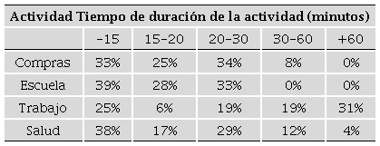 Existen guardianes de propiedades que realizan desplazamientos a sus otros trabajos y otras actividades como la atención médica a más de 60 minutos en transporte público. Igualmente, este tipo de transporte tarda entre 30 minutos y 45 minutos en el mejor de los casos y hasta una hora de tiempo entre una unidad y otra. Es por ello que hay quienes caminan hasta 30 minutos para llegar a los puntos de abordaje, que para este caso se encuentran en la carretera a Cajititlán y carretera a Chapala (Tabla 4).