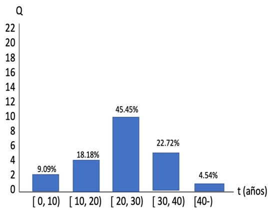 En función de lo anterior, se le asignó un valor de 50% tanto para la probabilidad de ocurrencia de “p” como para la probabilidad de ocurrencia de “q”, y margen de error d = 10%. De esta manera, se obtuvo una muestra próxima a las 64 encuestas (Ecuación 2):