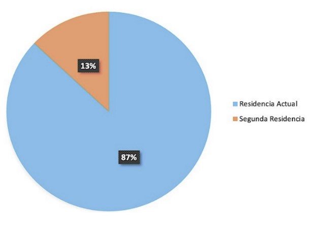 Para el 87% de los entrevistados, la propiedad es su residencia actual, que algunos la adquirieron construida y otros compraron el predio, el cual fue siendo construido progresivamente. A su vez, un 13% utiliza la propiedad como una segunda residencia o casa de campo, la cual suelen visitar algún fin de semana para el disfrute de la lejanía urbana y estar tranquilos (Figura 9). De igual forma, al preguntarles sobre su experiencia de vivir en el fraccionamiento, la mayoría sostiene que se vive tranquilo, con una mejor calidad de vida que la que se tiene en la ciudad; pero con inconvenientes relacionados últimamente con la instalación de fábricas. Inclusive, mencionan que en años recientes se han presentado brotes de delincuencia y robo.