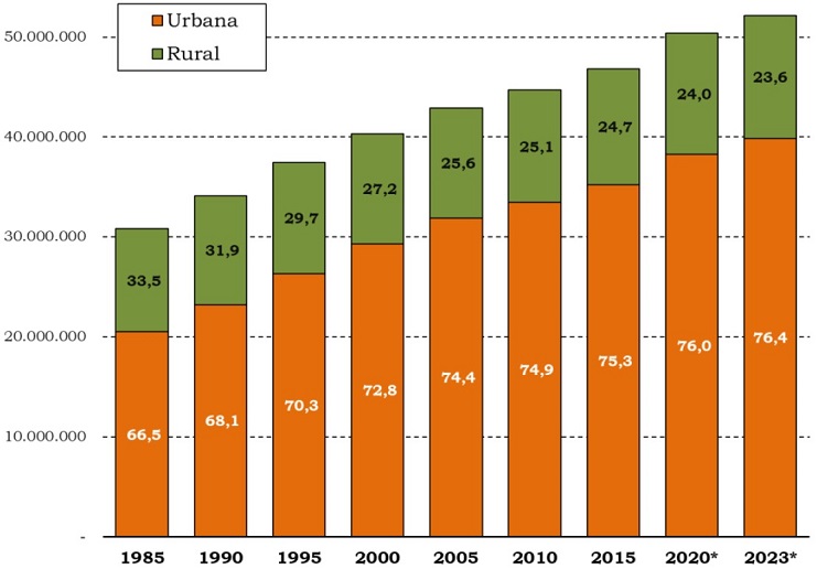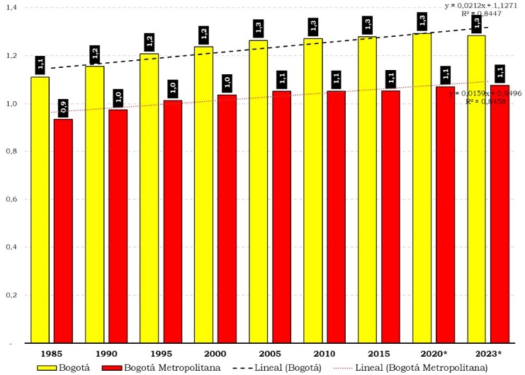 Como la tasa de fecundidad de reemplazo es de 2,1 hijos por mujer, esa previsión es alarmante por sus consecuencias negativas multidimensionales y, por ello, estas se encuentran en el centro de las preocupaciones actuales sobre los ritmos y las escalas del poblamiento de las ciudades, aflorando con insistencia la cuestión habitacional y, de manera coetánea, la de la movilidad cotidiana y la de la provisión de los servicios colectivos y de los públicos domiciliarios, entre las más acuciantes.