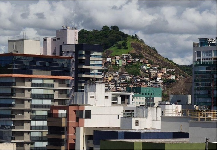 De fato, todo esse histórico de concentração de atividades econômicas com investimentos e melhorias no pólo de Vitória, aglomerou 35% da população do estado inteiro na capital, e gerou em 1977, um contingente de 60% da população que não recebiam nenhuma renda, ou renda inferior a dois salários mínimos, que segundo Fortunato (2011), “demonstra um alto grau de precarização das relações de trabalho, consubstanciada no baixo nível de rendimentos e em um alto índice de informalidade, principalmente no setor terciário.” Nas últimas duas décadas do século XX, a população triplicou em um espaço conturbado com quatro outros municípios vizinhos, levando a ainda mais problemas sociais (Nader, 2007; Botechia et al., 2020). No início da década de 1970, aproximadamente 250 mil pessoas desempregadas, e sem qualificações para trabalhos na cidade, chegaram à capital e se estabeleceram nas redondezas sem infraestrutura, criando as favelas, o que demonstrou um crescimento desordenado do município. Foi neste contexto que, entre 1980 e 1990, surgiram as ocupações ao longo da rodovia Serafim Derenzi, que se tornaram os bairros Nova Palestina (Figura 4), Resistência (Figura 5), Redenção, Aglomerado São Pedro (Figura 6), Grande Vitória, Estrelinha, Inhanguetá e Nossa Senhora Aparecida, formando um aspecto de anel em torno do maciço central (Prefeitura de Vitória, 2022).