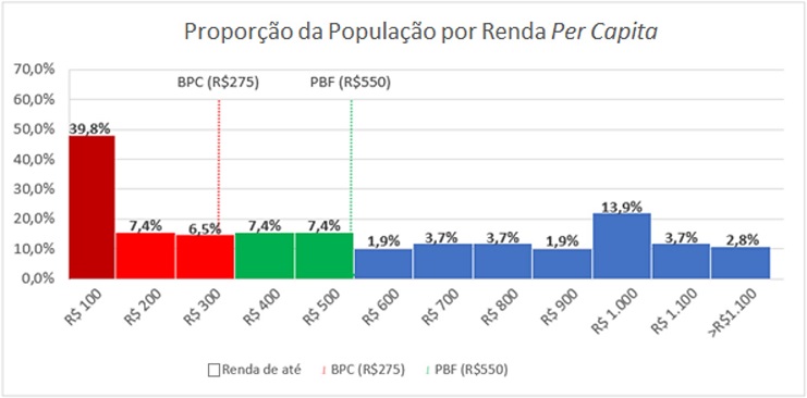 Portanto, os resultados obtidos indicam que existe uma lacuna no assistencialismo à população de baixa renda, apresentando uma parcela relevante da BoP que embora tenha uma renda inferior ao salário-mínimo não atende os requisitos de renda suficientes para pleitear algum tipo de auxílio.