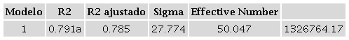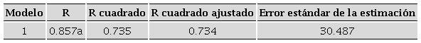 Posteriormente se procedió a construir una regresión lineal múltiple en el software estadístico SPSS 24, tomando como variable dependiente el déficit habitacional cuantitativo y como variables independientes las 4 variables mencionadas anteriormente, bajo la hipótesis de que dichas variables tienen efecto significativo sobre el déficit habitacional para el caso del área Metropolitana de Santiago. El detalle del modelo se presenta en la tabla 3.