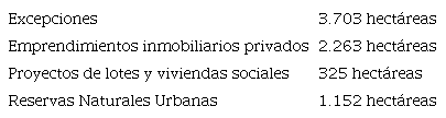 Esta dinámica se dio en el marco de la multiplicación de todo tipo de excepciones a la normativa urbana vigente. Desde la sanción del Código Urbano en 1995 se pueden rastrear más de treinta modificaciones de usos y parámetros urbanísticos aprobados a través de ordenanzas 5 , que respondían a necesidades del mercado o de las políticas habitacionales. Según el relevamiento de normativa llevado adelante, las excepciones en el período de estudio alcanzaron a casi 3.703 hectáreas repartidas por toda la ciudad 6. De este total, alrededor de 2.200 hectáreas modificaron sus usos y parámetros urbanísticos en emprendimientos privados y/o a través de planes especiales propuestos por el Estado Municipal, alrededor de 300 hectáreas modificaron sus usos y parámetros en proyectos de lotes y viviendas sociales 7 y cerca de 1.100 hectáreas para la creación de Reservas Naturales Urbanas (ver más abajo). Las excepciones son un mecanismos habitual para adaptar las normativas a los requerimientos de los intereses inmobiliarios ( Clichevsky, 1996), en línea con lo que plantea la literatura sobre privatización del urbanismo o el planeamiento urbano.