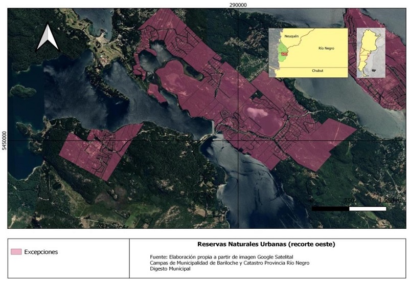 En respuesta al último de los conflictos socioambientales mencionados, entre el crecimiento urbano y los cuerpos de agua y áreas boscosas, se crea en el año 2005 la figura de Reservas Naturales Urbanas (RNU) como instrumento normativo municipal que crea áreas protegidas dentro del ejido. Este instrumento venía a dar respuesta a la necesidad de conservación y preservación de zonas que ya habían sido antropizadas y donde el suelo ya se había sido subdivido previamente, pero donde las características de la zona demandaban un plan de manejo particularizado para impedir una degradación ambiental ulterior. Si bien existen un sistema nacional (Ley 22.351) y un sistema provincial de áreas protegidas (Ley 2669), éstos no incluyen áreas urbanas, por lo que fue necesaria la creación de una figura particular para dar cuenta de las tensiones inherentes al proceso de urbanización y su impacto sobre el ambiente natural.