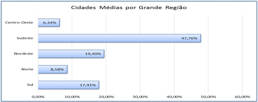 No Brasil, após a década de 1970, as cidades médias ganharam visibilidade tanto pela sua centralidade na rede urbana brasileira, ou seja, seu papel na articulação e organização do espaço, quanto pela ação e intervenção do planejamento estatal. Nesse caso, elas se tornaram instrumento de política pública para ações que focam a desconcentração e transformação dos espaços regionais. Como as cidades não são produtos prontos e acabados, a transformação das cidades médias está em processo e podem permanecer numa escala determinada por muito tempo, ou crescer ou diminuir. Outra consideração sobre as cidades médias diz respeito à localização geográfica, uma vez que esse fator é importante quando se trata da autonomia e da rede de influência (Amorim Filho & Serra, 2001; Joyal, 2019; Costa, 2020).