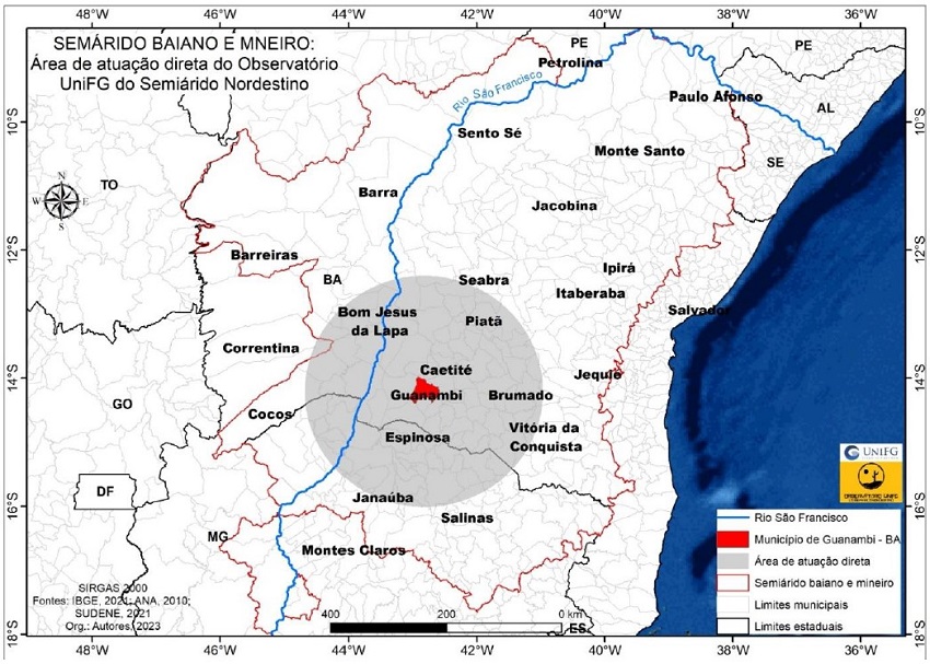 Apesar de Observatório ter como área de atuação o semiárido brasileiro, para esta pesquisa, torna-se inviável dimensionar um território tão amplo e complexo como o Semiárido. É nessa perspectiva, que a análise do tema de Planejamento Urbano a partir da pesquisa e extensão do Observatório, será analisada a partir do contexto de Guanambi, município sede do Observatório.