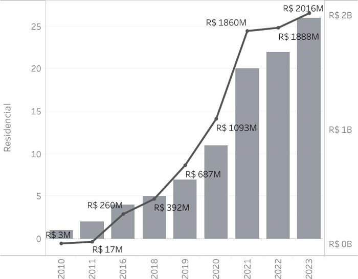 Em entrevista à Bloomberg Línea o diretor da asset manager destacou que objetivo do negócio foi ampliar seu portfólio de unidades habitacionais em empreendimentos multifamily. A MRV foi escolhida devido à sua capacidade de capturar a demanda de locação de famílias de renda média (aluguel entre R$ 1.500 até R$ 3.000), alinhado ao baixo custo de construção da empresa e à sua habilidade de incorporar terrenos em áreas “bem localizadas”. Segundo ele, “as categorias de baixa e média renda estão indo muito bem no segmento e devem crescer mais do que o multifamily de alto padrão. A demanda tem crescido muito”12.