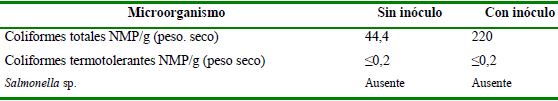 En ambos tratamientos se alcanzó la etapa termofílica, lo que garantizó la higienización o desinfección biológica del producto final respecto a microorganismos patógenos, como resultado de la incidencia simultánea de las altas temperaturas, la presencia de sustancias químicas de efecto antibiótico y la generación in situ de vapores y productos tóxicos causada por el calentamiento y la transformación química 33.