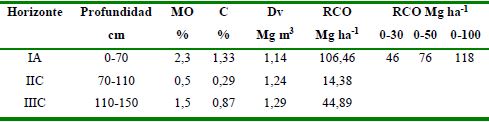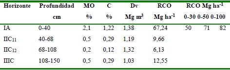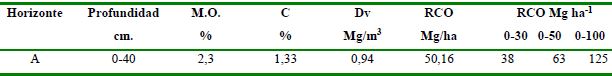 RCO: reservas de carbono orgánico en toneladas de carbono por hectárea