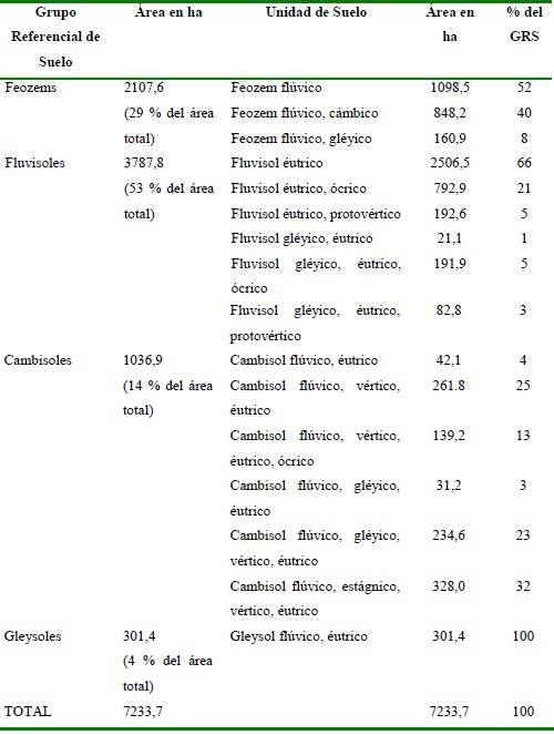 Key words: World Reference Base, Fluvisol, Feozems, Cambisol, Gleysol.