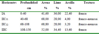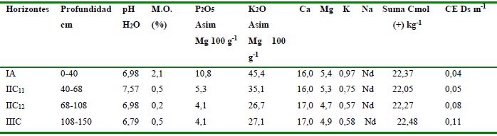 En las Tablas 12, 13 y 14 se muestran las características de un perfil de este GRS que presenta un nivel freático a 40 cm de la superficie del suelo