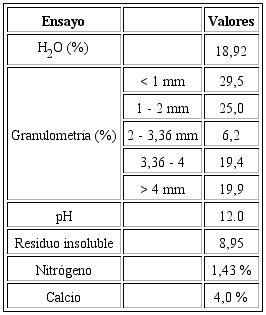 La valoración del residuo sólido del filtro primario como material para encalar se muestra en la Tabla 5.