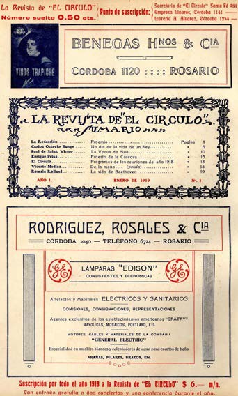 Inicialmente y en tanto fiel expresión de la asociación cultural, La Revista de El Círculo estaba pensada para circular entre un grupo restringido y distinguido, aunque podría pretender trascender ese círculo institucional original, para llegar al conjunto de la burguesía local; pero nunca intentar atravesar aquella barrera de clase y de pertenencia, para pretender masificarse. Se configuraba de esa manera como una revista cultural e ilustrada, de arte y de literatura, de música y de ocio. La Revista de El Círculo sería iniciativa de uno de sus socios fundadores y a la postre Presidente durante el período de la quinta Comisión Directiva (1918-1919), el Sr. Luis Ortiz de Guinea2. Aparece el número inicial de su primera época en el mes de enero de 1919, con la intención de que mantuviera una periodización de aparición mensual. Justificando su lanzamiento se destacaba una singular ausencia y una evidente necesidad: la de crear una revista de arte y de cultura para la ciudad de Rosario.
