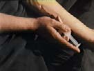 Mas há um elemento a mais: o deleite. Junta-se imolação e hedonismo no curta Ave pois, em seguida à degola, o jovem carrasco recolhe o sangue numa seringa e o injeta na veia do próprio braço, insinuando o ato de auto injetar-se drogas químicas para obtenção de prazer. Repete a dose. O close é exagerado e incômodo, vemos a movimentação da agulha dentro da veia do ator. Em seguida, como num êxtase, com a câmera enquadrando sua face, o personagem passa a rir de forma insana, descontrolada, mas o som que ouvimos não é riso, é cacarejo. Apenas nesse momento de êxtase e delírio, aos 4’ e 15’’ entra a música, uma espécie de batuque, que lembra rituais afros, de teor místico e festivo simultaneamente16.