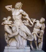 Desde a antiguidade, “os sofrimentos mais comumente considerados dignos de ser representados são aqueles tidos como frutos da ira, divina ou humana” (SONTAG, 2003, p. 37). A escultura de Laocoonte e seus filhos se retorcendo de dor é um dos exemplos mais conhecidos (Figura 1). Sem datação exata, consiste num conjunto esculpido em mármore que representa o castigo impingido pelos deuses ao sacerdote troiano e seus dois filhos. Ele foram esmagados até a morte por cobras enormes, por que Laocoonte teria avisado os troianos sobre o cavalo de madeira dos gregos. O incidente foi contado por Virgílio na Eneida, mas não se sabe o que veio antes: a escultura ou o texto poético. O grupo escultórico foi objeto de interesse de Gotthold Ephraim Lessign, teórico da arte alemão do século XVIII que refletia sobre a especificidade de cada linguagem e sua adequação na representação do trágico. O que promovia maior deleite estético? Entre outras coisas, nessa escultura lhe chamava a atenção a forma de expressar a emoção nas faces distorcidas dos personagens, causando desprazer. Dizia ele: