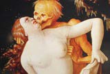 Considerando os incontáveis aspectos contraditórios do erotismo, Bataille retoma os seus vínculos com a religiosidade e com a violência, a partir das ideias de sofrimento, sacrifício e exaltação. Reitera a relação entre erotismo e brutalidade em obras renascentistas como as gravuras de Cranach (Figura 3) e de Baldung Grien (Figura 6), que associam a sedução erótica à podridão da morte.